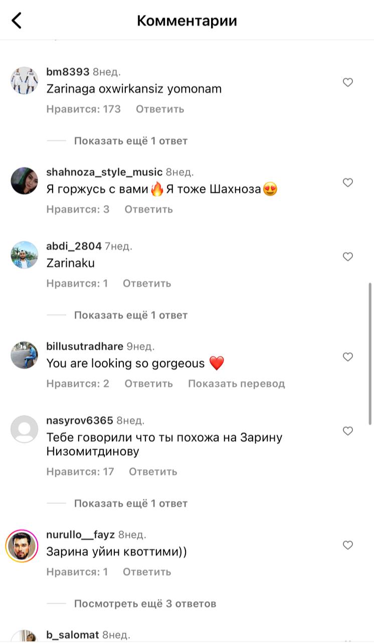 «Я подумала, что это Зарина», «Это же Зарина», «Вам не говорили, что вы похожи на Зарину Низомуддинову?», – написали комментаторы.