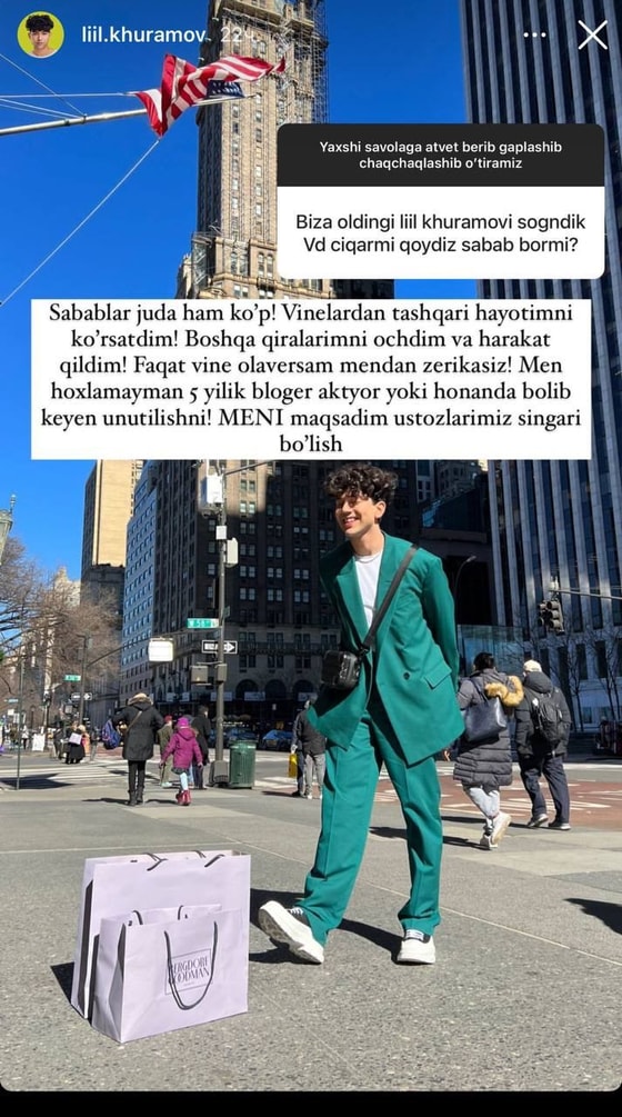 Накануне узбекский блогер Озод Хуррамов поговорил со своими фанатами, ответив на интересующие их вопросы. Один из пользователей поинтересовался, почему он перестал публиковать вайны.