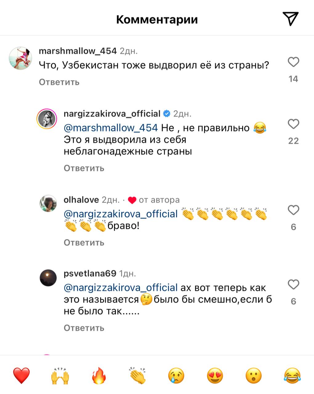 Популярная исполнительница Наргиз Закирова, отвечая на вопросы подписчиков неожиданно заявила, что Узбекистан является неблагонадежной страной. Известно, что сейчас певица находится в США.