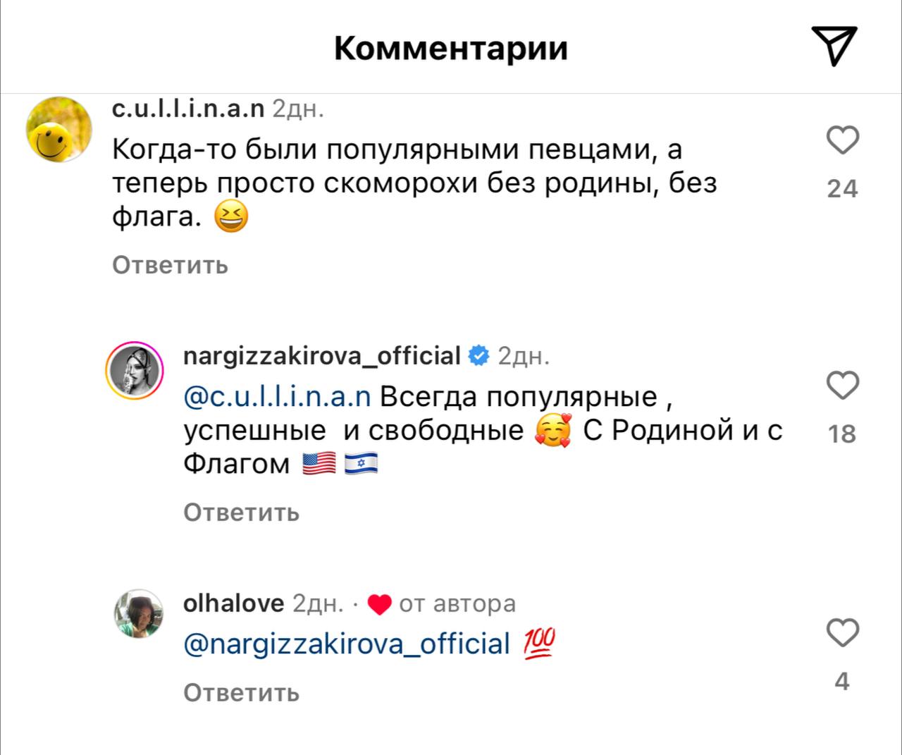 После этого исполнительница написала, что у нее есть родина и флаг, добавив к комментарию флаг Израиля и США.