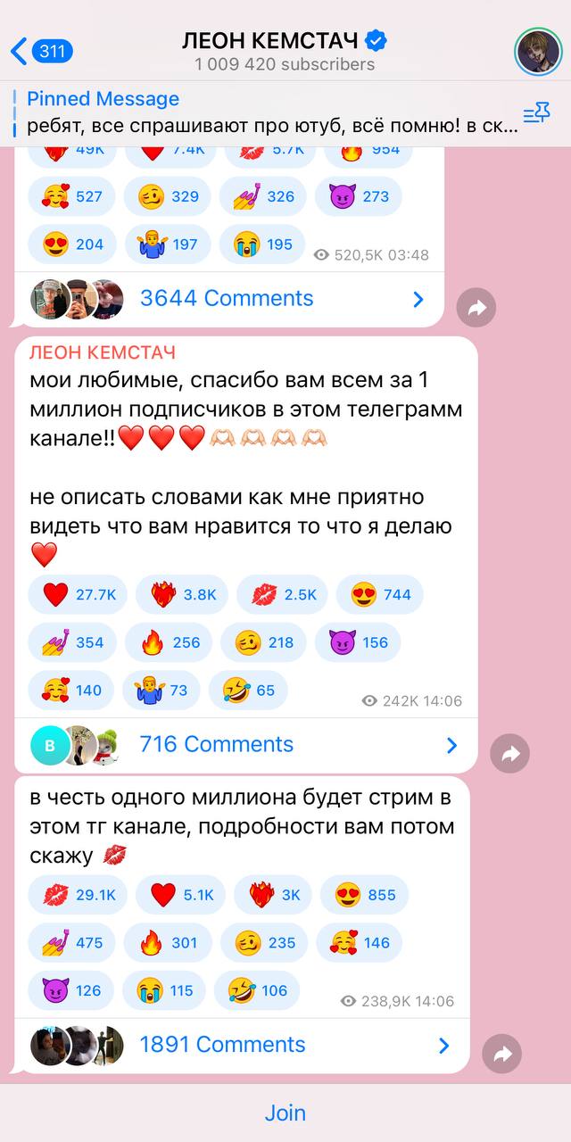 В слову, меньше, чем за месяц Леону Кемстачу и Рузилю Минекаеву удалось набрать по 1 миллиону подписчиков в своих соцсетях.