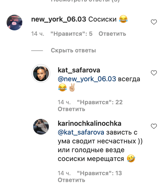 Хейтеры выискивают малейшие изъяны во внешности модели. Многим не нравятся пальцы Екатерины. Сафарова молчать не стала и ответила на негатив.