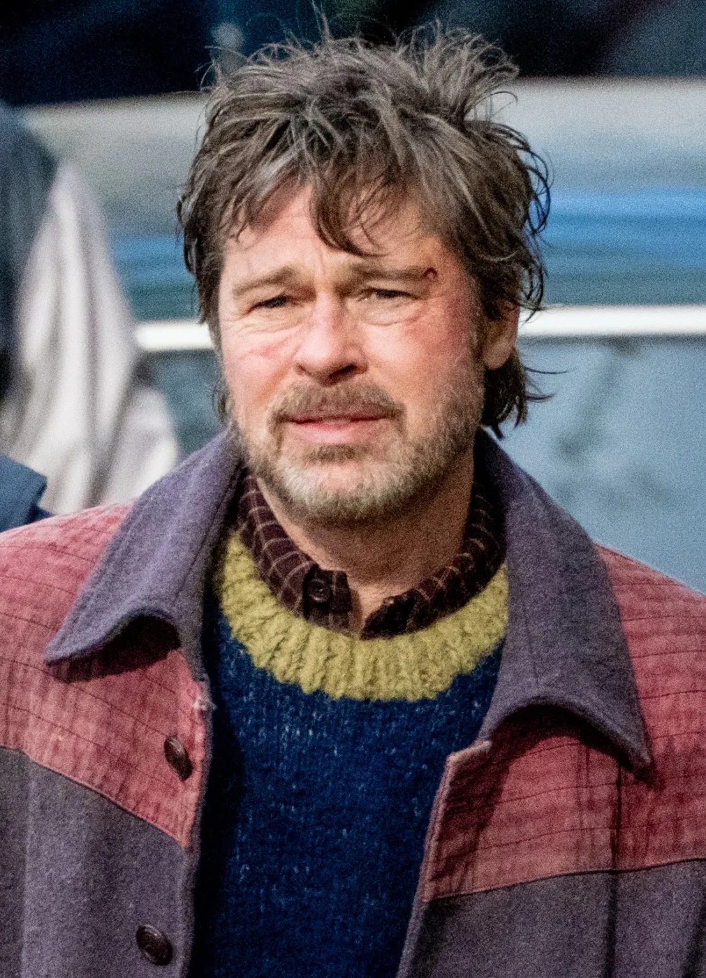 Однако поводов для волнения нет — необычный внешний вид связан с ролью. Образ Брэда Питта является результатом работы гримеров, а не реальных изменений.