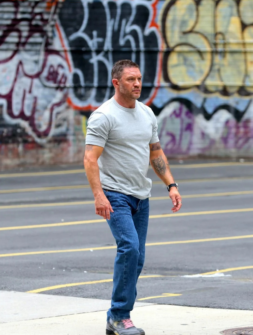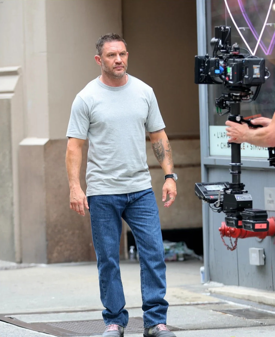 46-летний актер, номинированный на премию «Оскар», в понедельник, 5 августа прогулялся по улицам Нью-Йорка, чтобы снять сцены для будущего фильма «Веном: Последний танец».