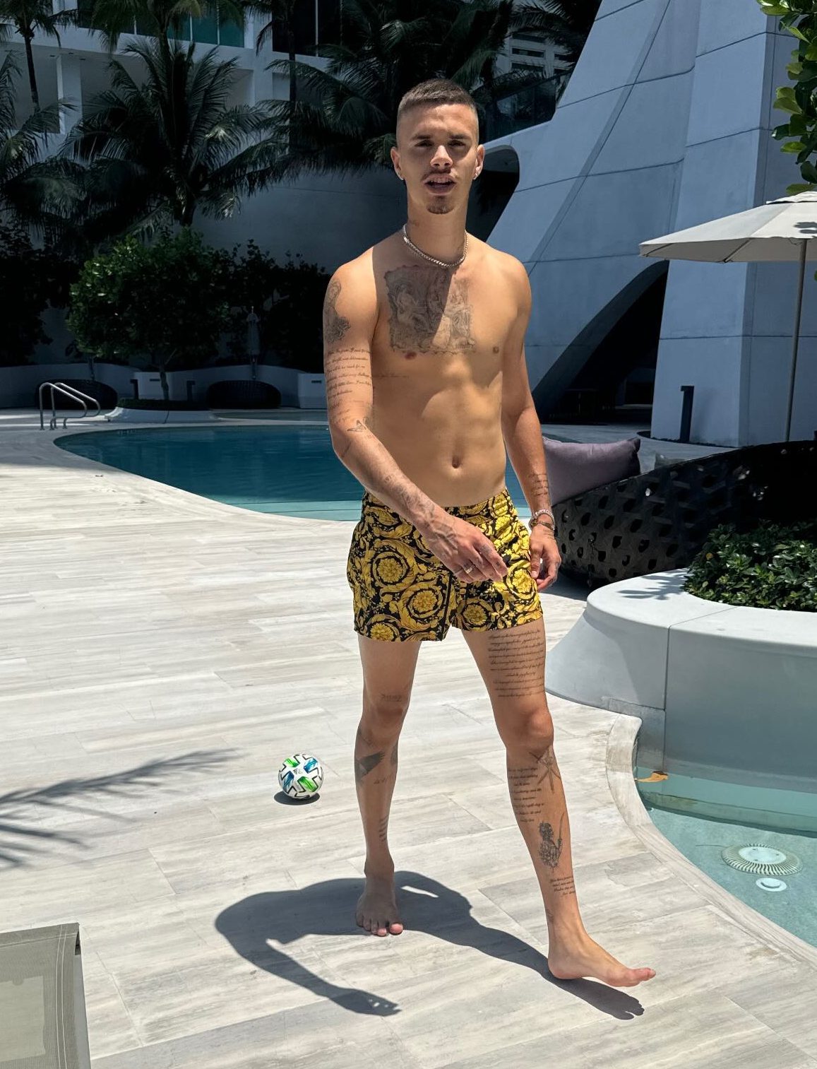 Сын Дэвида и Виктории Бекхэм, 21-летний Ромео, не собирается отставать от своего отца. Наследник поделился фотографией в соцсети, продемонстрировав свою отличную физическую форму. К тому же, пользователи уже отмечали его сходство с отцом.