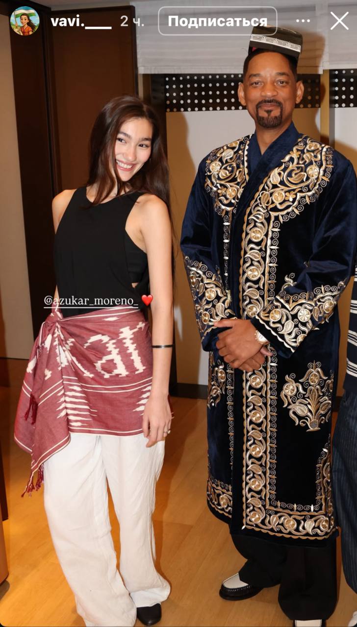 Знаменитый голливудский актер Уилл Смит пополнил свой гардероб традиционным узбекским нарядом — чапаном и тюбетейкой. Этот национальный подарок ему преподнесли узбекская супермодель Vazira John и популярный блогер Саидазим Ризаев во время личной встречи.