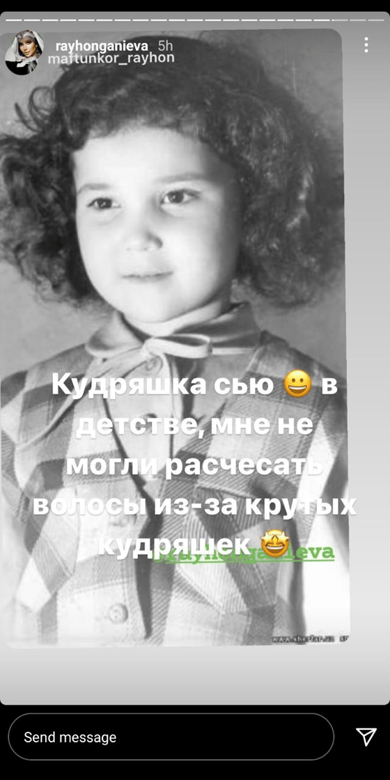 Недавно в своем Instagram певица Райхон опубликовала свою детскую фотографию. Оказалось, певица в детстве певица была кудрявой.