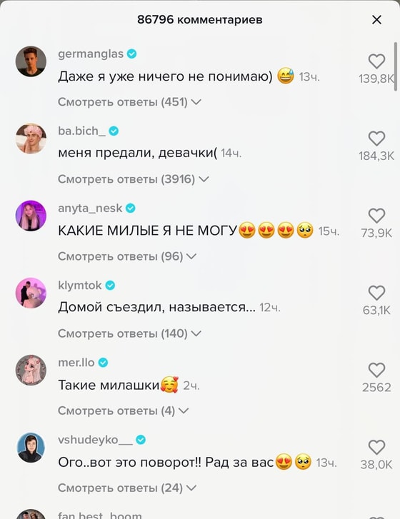 Также за несколько часов ярые фанаты успели снять дуэты с этим видео в TikTok и выложить к себе в аккаунт.
