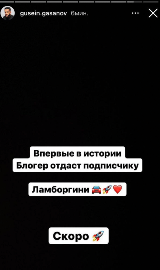Российский популярный блогер Гусейн Гасанов опубликовал новое stories, которым заставил своих поклонников взволноваться.