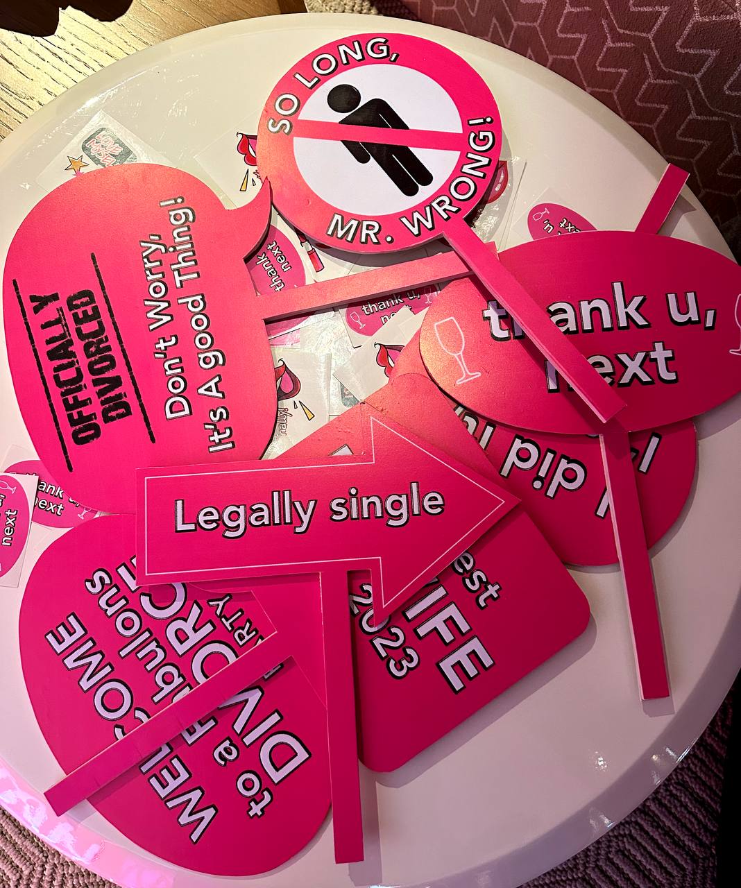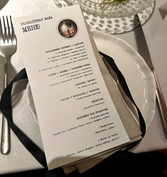 Марьям Тилляева позаботилась о каждой детали, начиная от меню «Разведенная Маша» с позициями: «Украденные сережки», «Арбузер», «Сессии у психолога» до креативных карточек Legally single, Officially divorced, Ex-wife, с которыми фотографировались приглашенные гости.