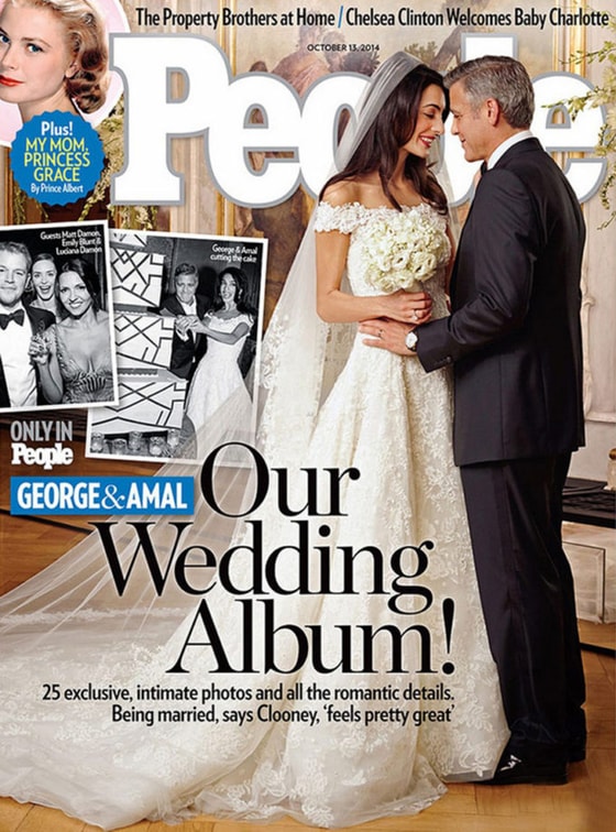 Свадебное платье, которое теперь многие невесты используют в качестве референса, Амаль сшил Оскар де ла Рента. В день церемонии слетелись более сотни знаменитостей, включая Синди Кроуфорд, Билла Мюррея, Мэтта Деймона, Боно и даже главного редактора американского Vogue Анну Винтур. Что и говорить, такого масштаба свадьбу из звезд пока никто не повторил.