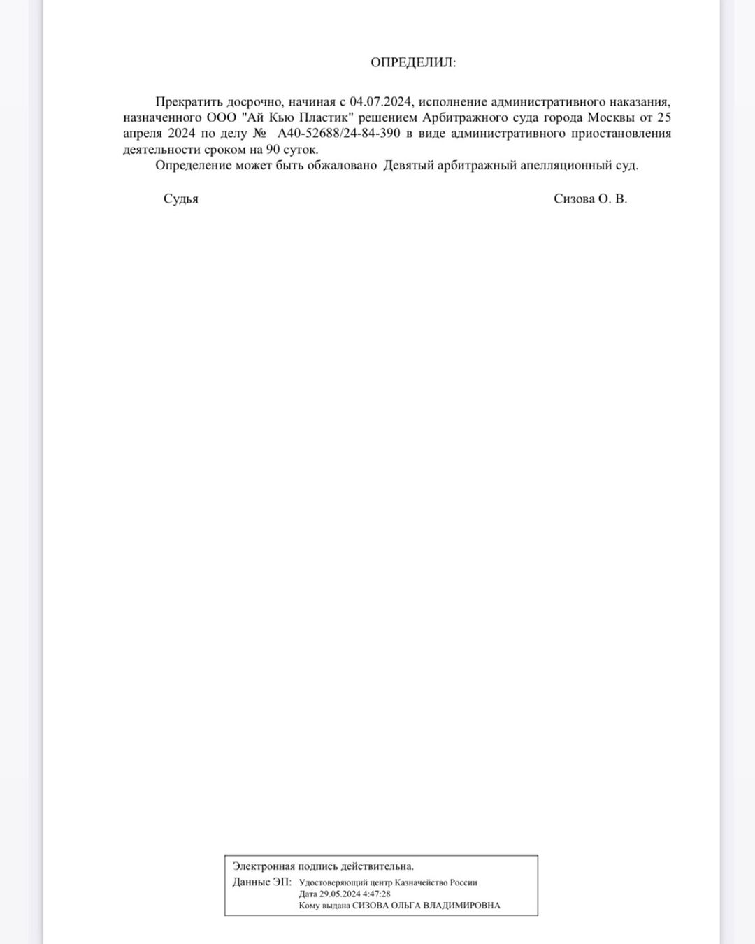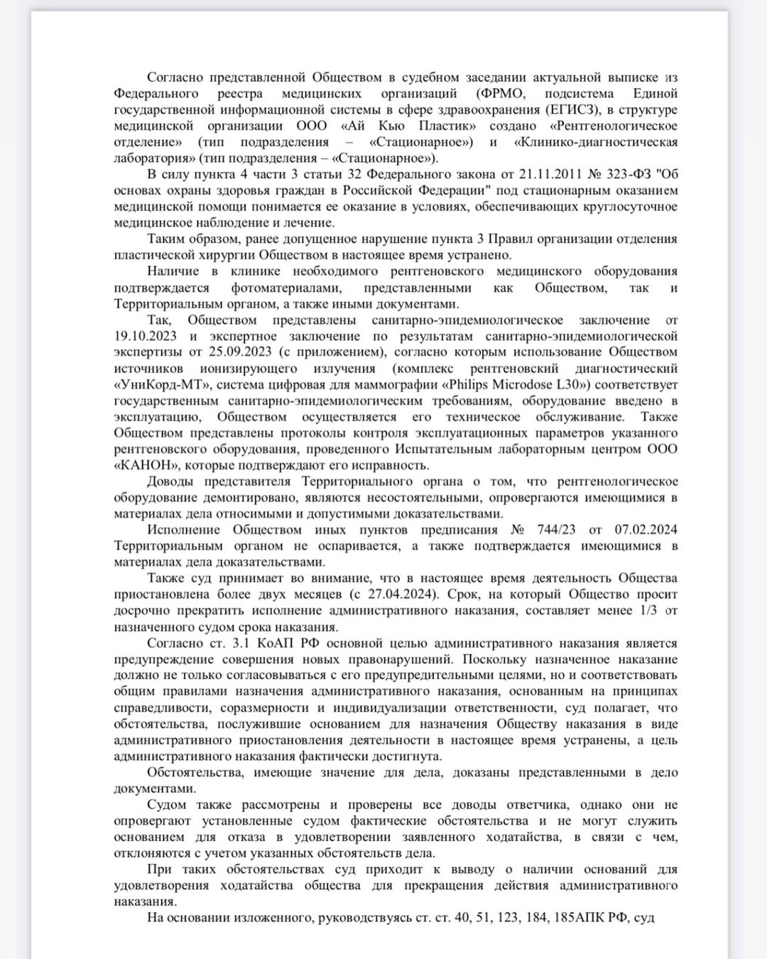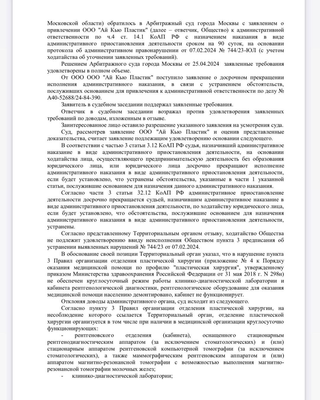 После множества проверок по решению Арбитражного суда Москвы клиника IQ Plastique вновь продолжит свою деятельность. Светлана прикрепила к посту все документы, подтверждающие завершение дела.