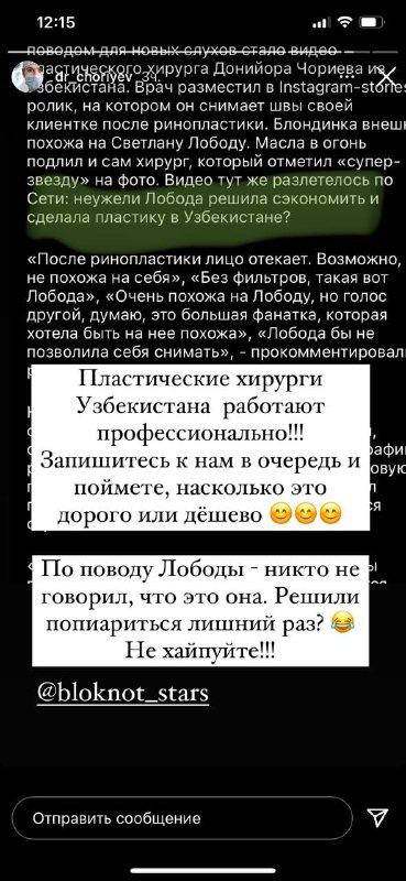 В сети разгорелся скандал с участием пластического хирурга из Узбекистана и популярной российской звезды Светланы Лободы.