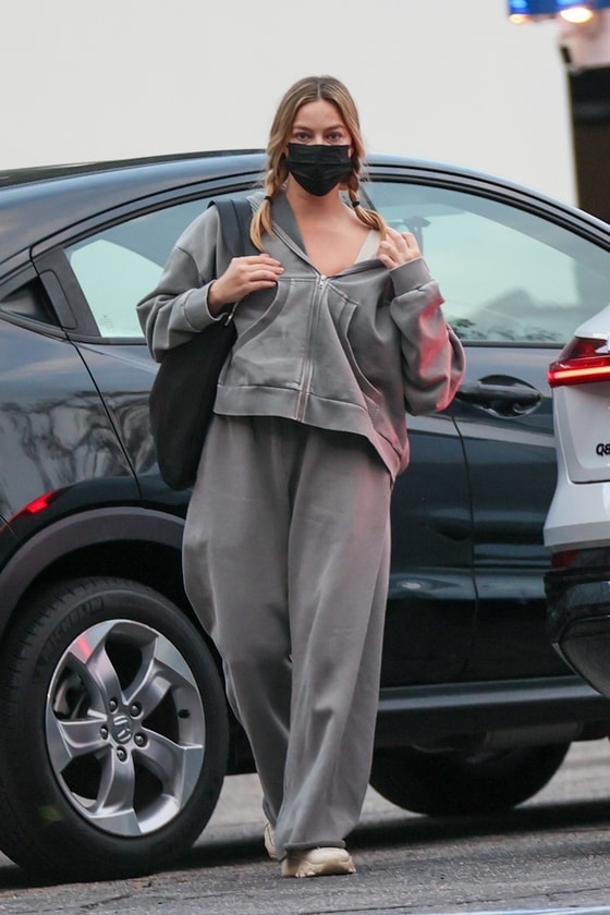 Звезда фильма «Барби» предпочла комфортный повседневный стиль, выбрав свободную толстовку и брюки в тон во время прогулки в офис с подругой. Лицо 34-летней актрисы было скрыто под черной медицинской маской.