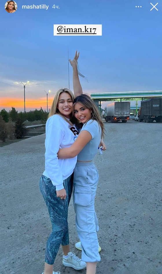 Марьям поделилась видео и фотографией с Иман, в которой они стоят в обнимку на фоне метановой заправки.
