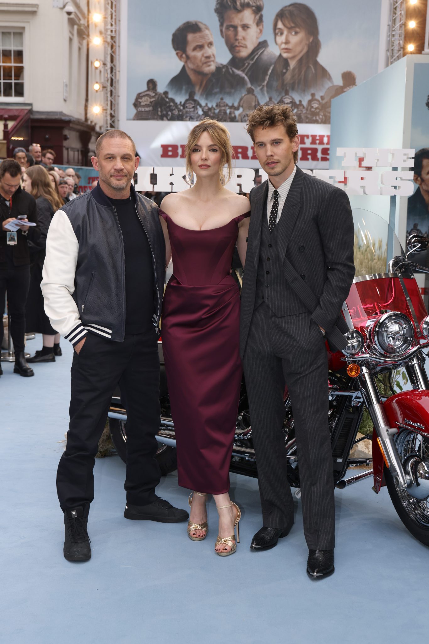 Стоит отметить, на показ Том Харди пришел в бомбере и черных брюках, а его коллеги по фильму — Остин Батлер и Джоди Комер — предпочли более элегантные образы.