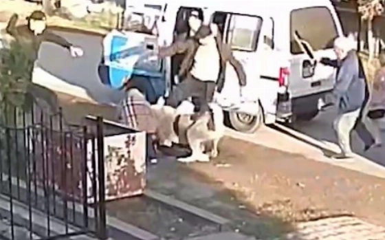 Женщина пыталась отогнать собаку, но у нее не хватило сил. Гражданке помогли водители и пассажиры автомобилей Damas, которые проезжали неподалеку.