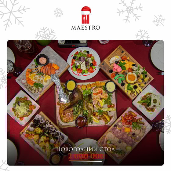 Также вас ждут весёлые конкурсы и интерактивы от ведущего, новогодняя программа с шоу-балетом, музыкальная программа от диджея Macarella и множество фирменных подарков от ресторана Maestro.