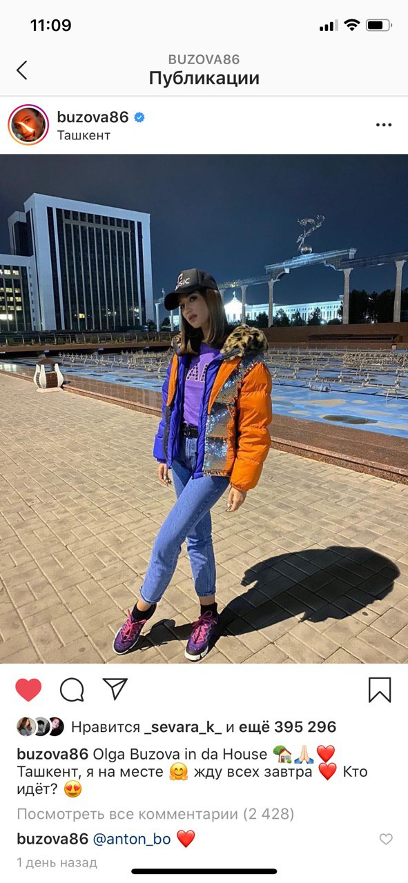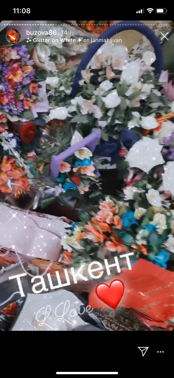 Бузова выложила несколько снимков у главных достопримечательностей Ташкента и начала подготовку к шоу. Певица поблагодарила организаторов за накрытый стол, а зрителей за халат ручной работы и море цветов.