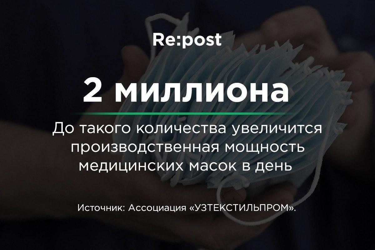 Repost решил узнать, сколько на самом деле стоят марлевые маски и антисептики. Ранее премьер-министр Абдулла Арипов заявил, что правительство будет предпринимать все меры против необоснованного повышения цен.