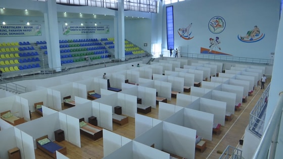 Несколько спортивных залов спецшколы Олимпийского резерва в Фергане разделили на комнаты. В каждой комнате имеются кровати и необходимое медоборудование. Также в эти центры доставлено около 500 концентраторов кислорода и столько же устройств ИВЛ.