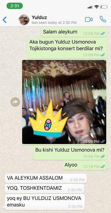 «Юлдуз Усманова в Ташкенте. Это не она» - написал менеджер.
