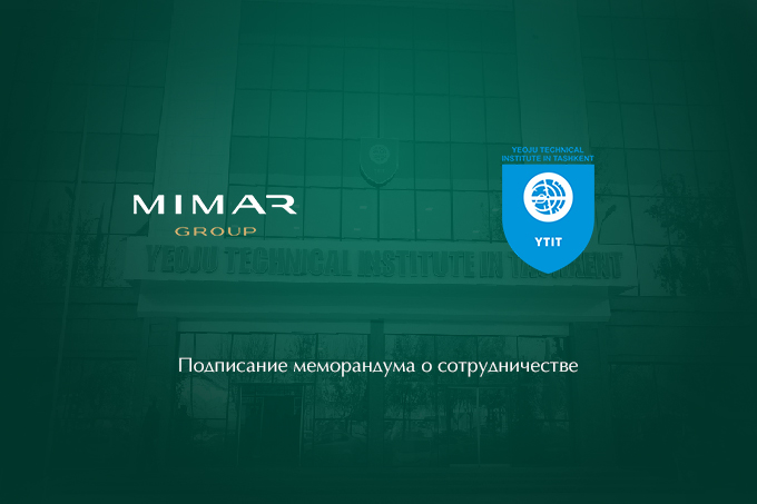 Строительная компания MIMAR Group и Технический институт Ёджу в Ташкенте подписали меморандум о сотрудничестве, направленный на поддержку и подготовку кадров в сфере архитектуры и строительства.
