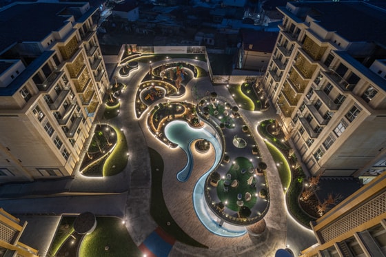 Это уникальное архитектурное решение: искусственный водопад, лаунж-зона, растения, детская площадка и воркаут-зона — размещены на бетонном основании, под которым находится два этажа парковки, благодаря чему у резидентов будет уединённое пространство для отдыха, скрытое от шума города.