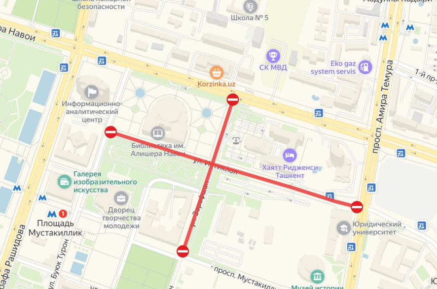 — улица Истиклол — от улицы Буюк Турон до проспекта Амира Темура.