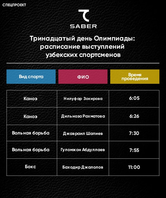 Итоги узбекских спортсменов тринадцатого дня Олимпиады: