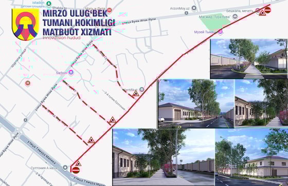 Также частично будет ограничено движение автотранспорта на улицах, прилегающих к улице Султония: Шуртепа, Шуртепа 1-тупик и Султония 5-тупик.