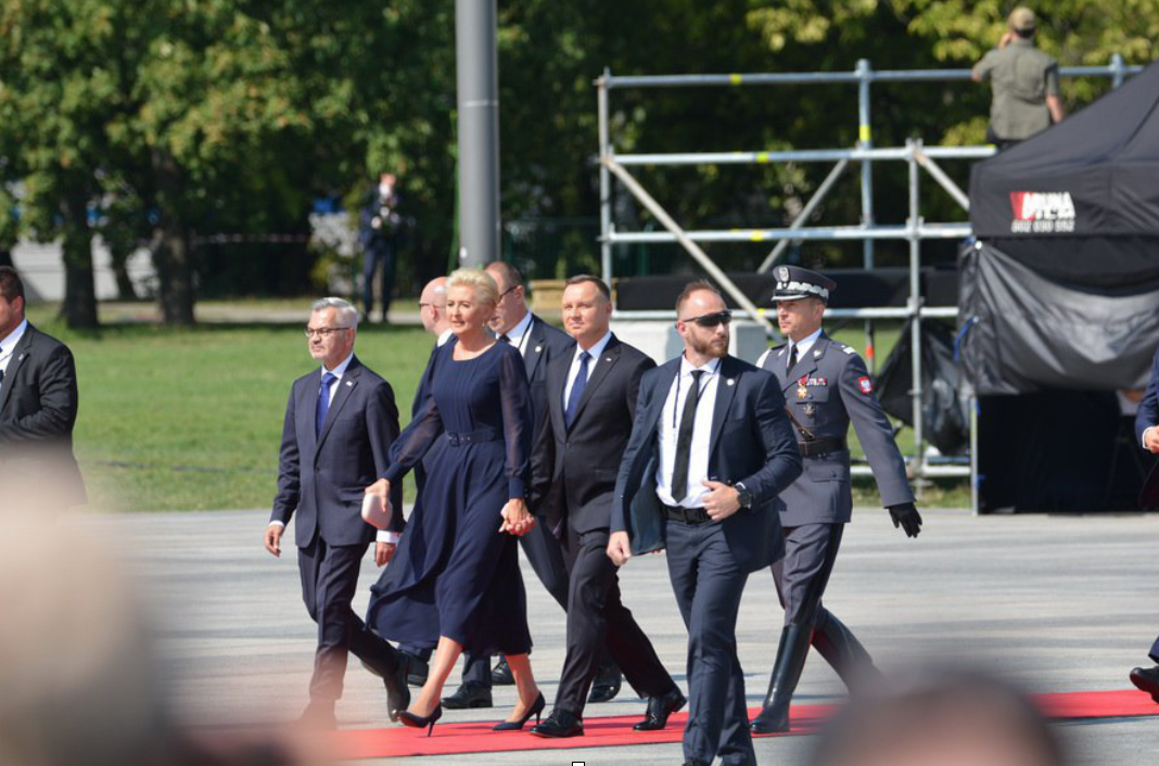 1 сентября на площади Пилсудского в центре Варшавы начались мероприятия по случаю 80-й годовщины начала войны. Событие посетили приглашенные польским руководством лидеры стран НАТО, ЕС, «Восточного партнерства». Среди гостей: вице-президент США Майк Пенс, президент Германии Франк Вальтер Штайнмайер, канцлер той же страны Ангела Меркель. Также присутствовали президент Украины Владимир Зеленский, грузинский лидер Саломе Зурабишвили, главы Литвы, Латвии, Мальты, Словаки, Черногории, Эстонии, Исландии, Хорватии, Болгарии, Словении, Албании и Венгрии. В мероприятиях приняли участие и премьеры Франции, Бельгии и Люксембурга Эдуард Филипп, Шарль Мишель и Ксавье Беттель, а также генерал-губернатор Канады Жюли Пейетт.