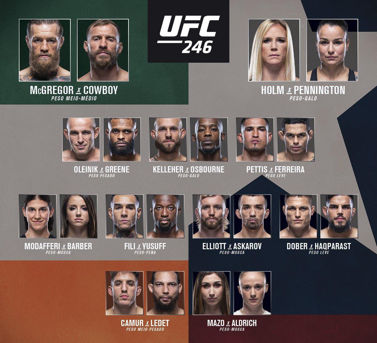 Полная карта поединков на турнире UFC 246: