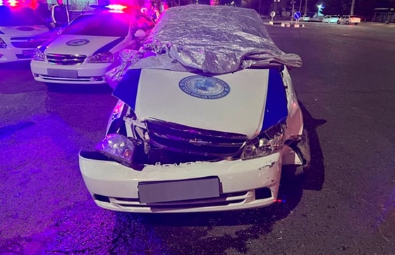 В Ташкенте сотрудник ДПС на автомобиле Lacetti отправился в погоню за водителем Spark и столкнулся с Gentra, перевернув автомобиль. Об этом сообщает пресс-служба ГУБДД МВД.