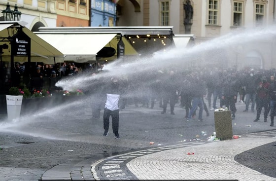 Власти Чехии усилили ограничения из-за роста заболеваемости коронавирусом — теперь в стране закрыты кафе, кинотеатры и запрещены спортивные мероприятия. Новые правила не понравились футбольным фанатам, которые вместе с другими жителями вышли на митинг против ограничений в Праге. Об этом сообщает TJ.