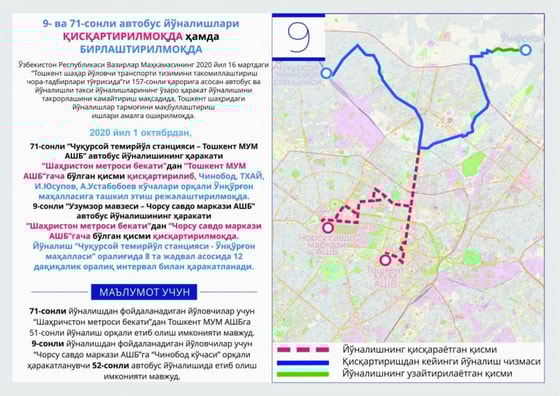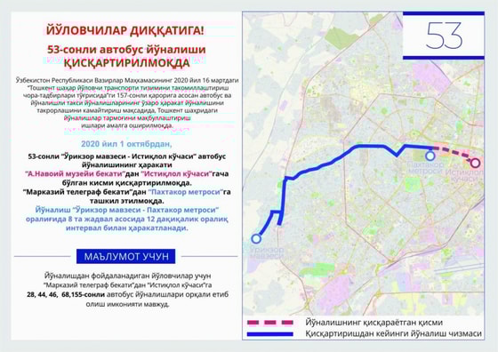 Отмечается, что данные новшества основаны на Постановлении Кабинета Министров Республики Узбекистан от 16 марта 2020 года № 157 «О мерах по совершенствованию системы городского пассажирского транспорта Ташкента».
