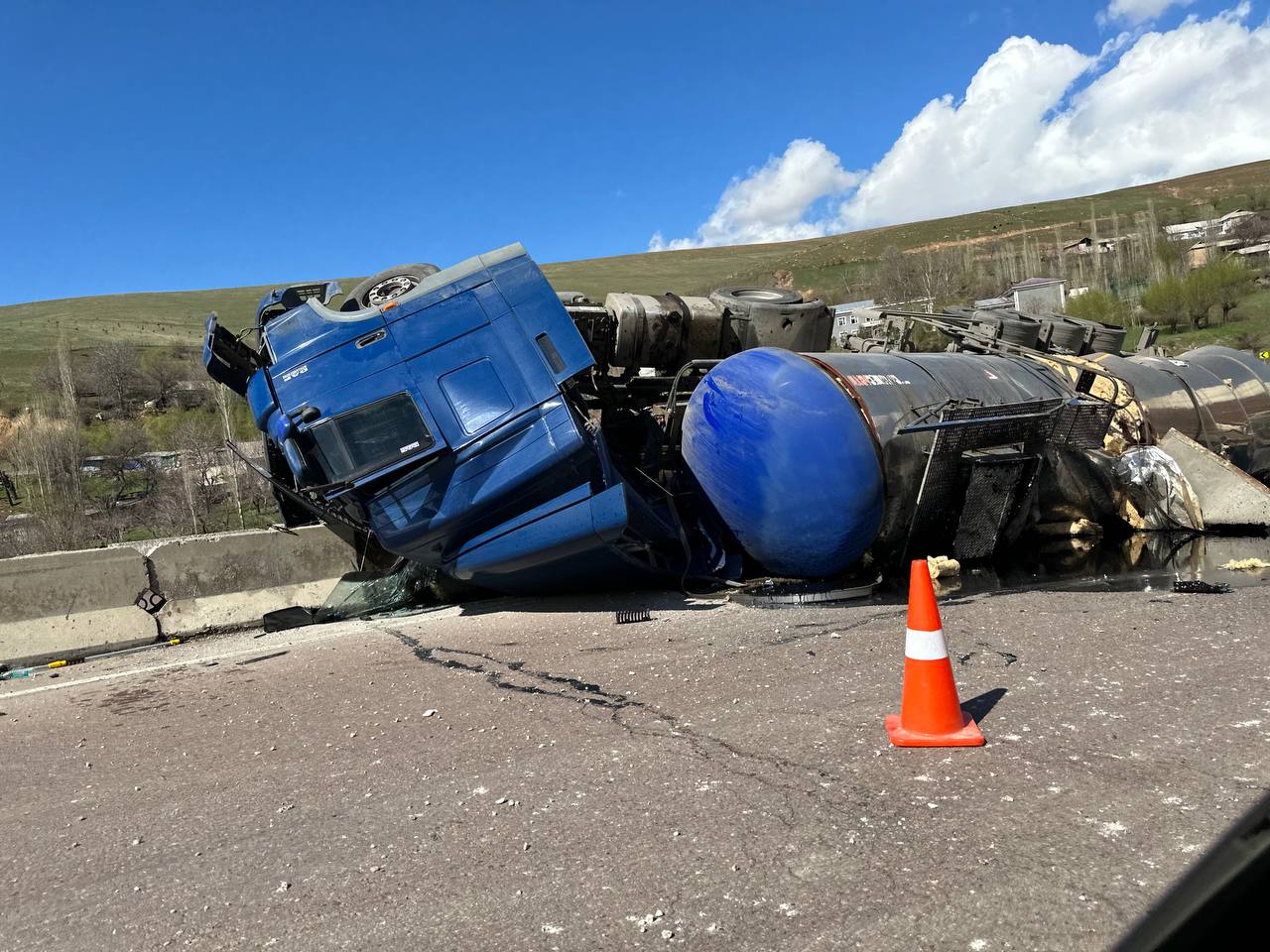На перевале Камчик перевернулся грузовик с нефтью, сообщает пресс-служба МЧС.