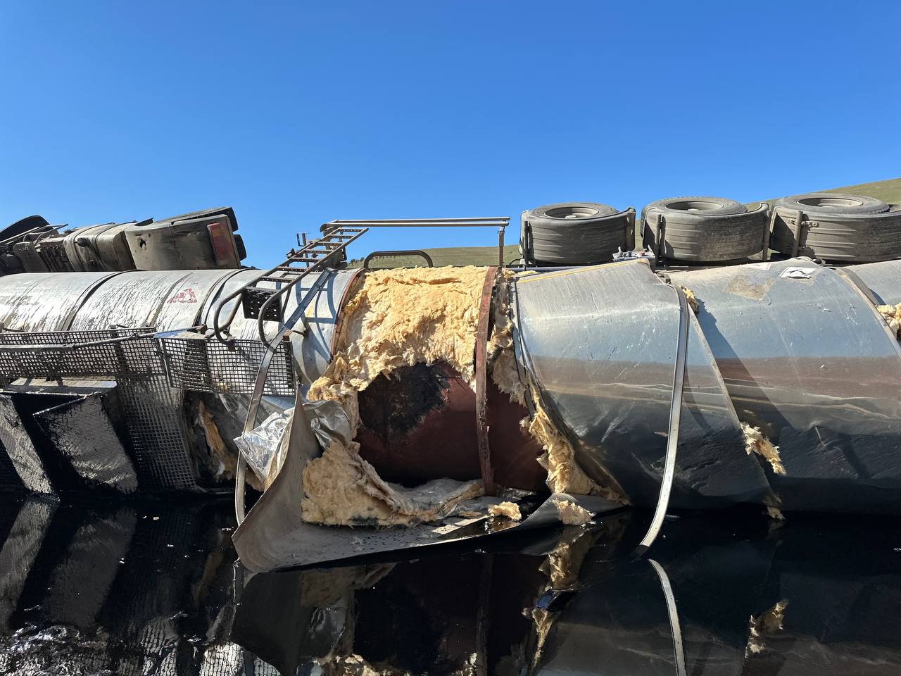 Авария случилась 21 марта на 198-м километре трассы А-373. Водитель грузовика MAN с цистерной нефти не справился с управлением и врезался в дорожное ограждение. Машина перевернулась, нефть разлилась на проезжую часть.