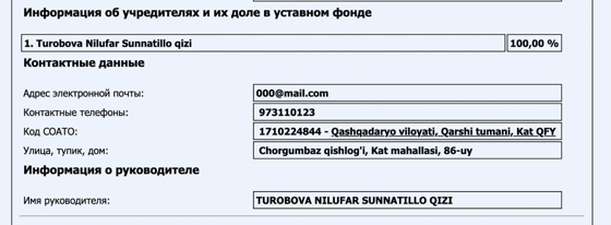 Руководителем NXS CTROYBADMETALL числится Нилюфар Туробова, предприятие было создано 1 ноября. Через два дня оно выиграло тендер по теплицам.