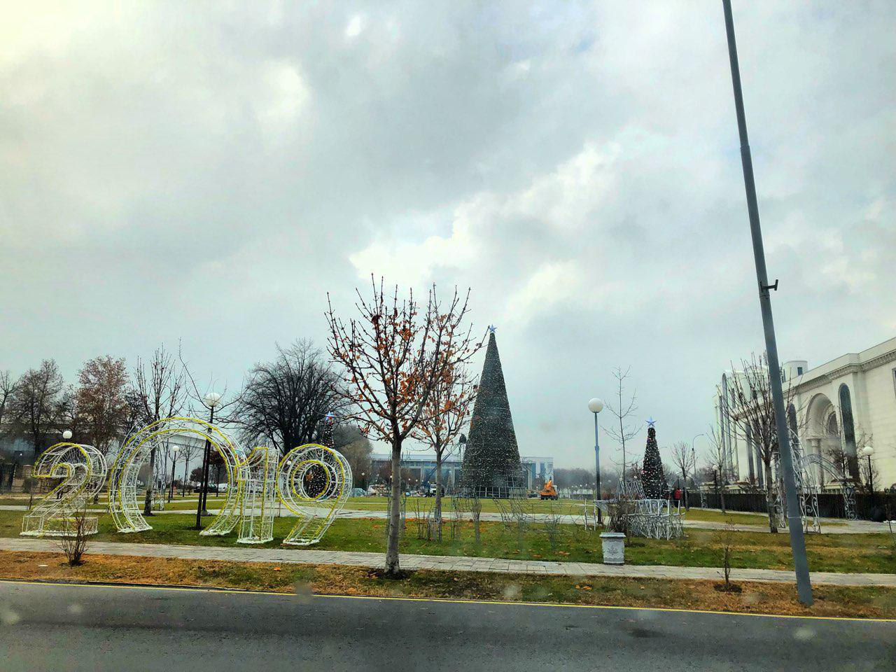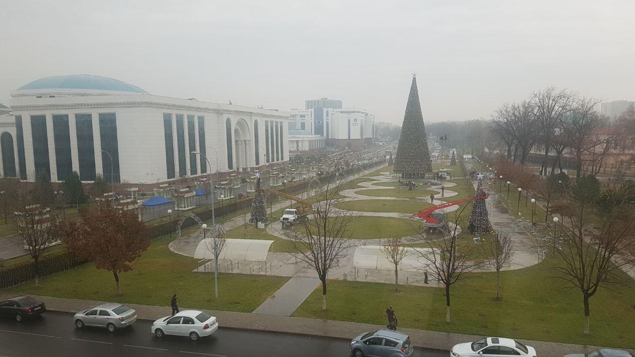 Новогодняя елка установлена на проспекте Мустакиллик сзади библиотеки им. Алишера Навои.