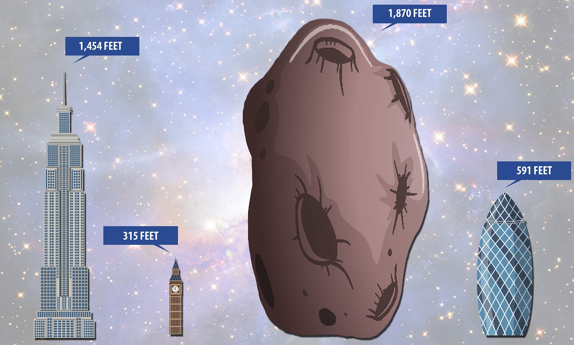 Точные размеры объекта составляют 569 метра. Он был обнаружен в 2006 году. Для сравнения, высота американского небоскреба Эмпайр-стейт-билдинг составляет 443 метра (вместе со шпилем)