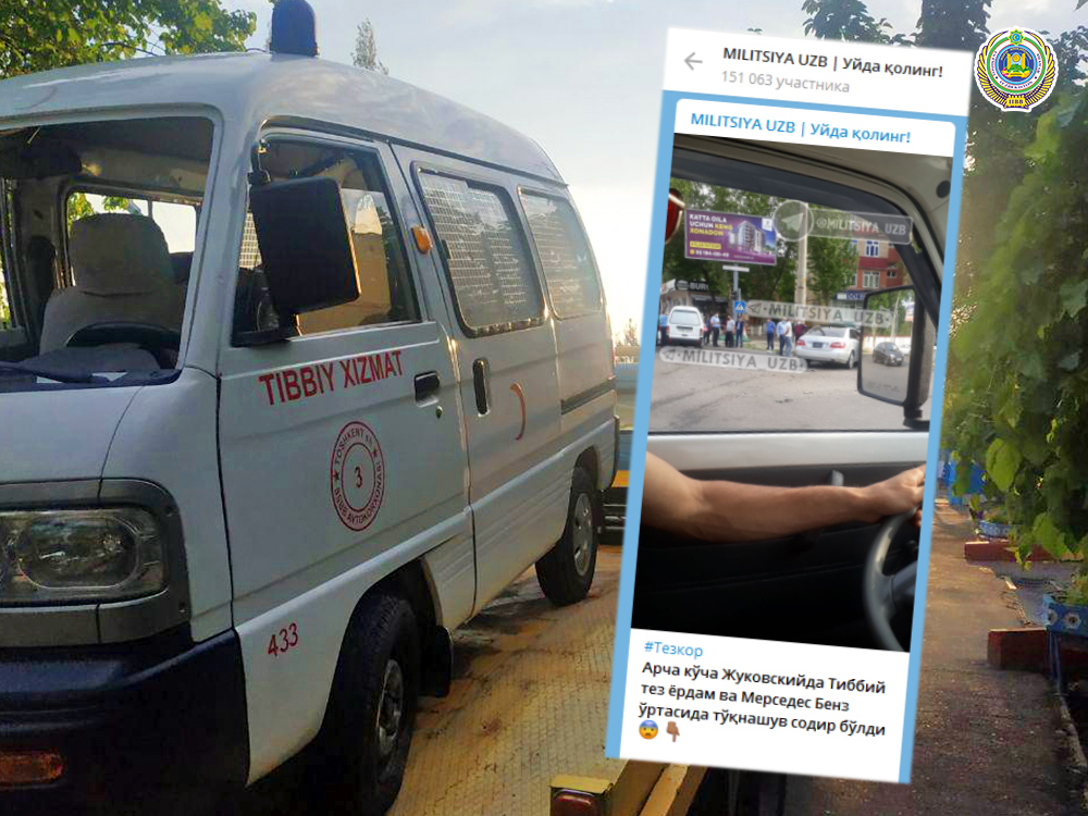 Автомобиль марки Mercedes под управлением 26-летнего водителя врезался в автомобиль скорой помощи, закрепленный за диагностической поликлиникой при детской больнице. Последним управлял 63-летний водитель. ДТП произошло на пересечении Малой кольцевой автодороги с улицей Фозилтепа.