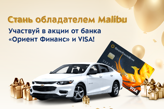 Успейте принять участие в беспрецедентной акции! Откройте карту VISA в банке «Ориент Финанс» и станьте участником промежуточного розыгрыша денежных призов.