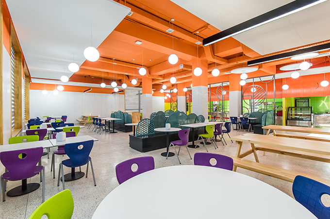 - Современные классы, оснащенные органометрической мебелью и интерактивной техникой;