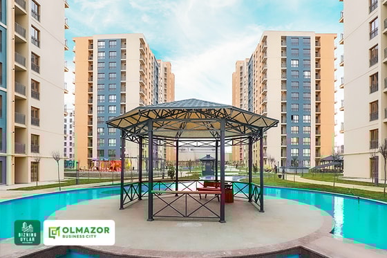 Безусловно, важной частью экологичности данного проекта являются большие зеленые зоны на территории всего жилого комплекса, а также уютные внутреннее дворы, искусственные водоемы, большое количество беседок, спортивных и детских площадок и множество прогулочных аллей. В основе концепции жилого комплекса «Olmazor Business City» лежит философия свободы простора и экологичности. Стоит напомнить, что жилой комплекс расположен на берегу реки.