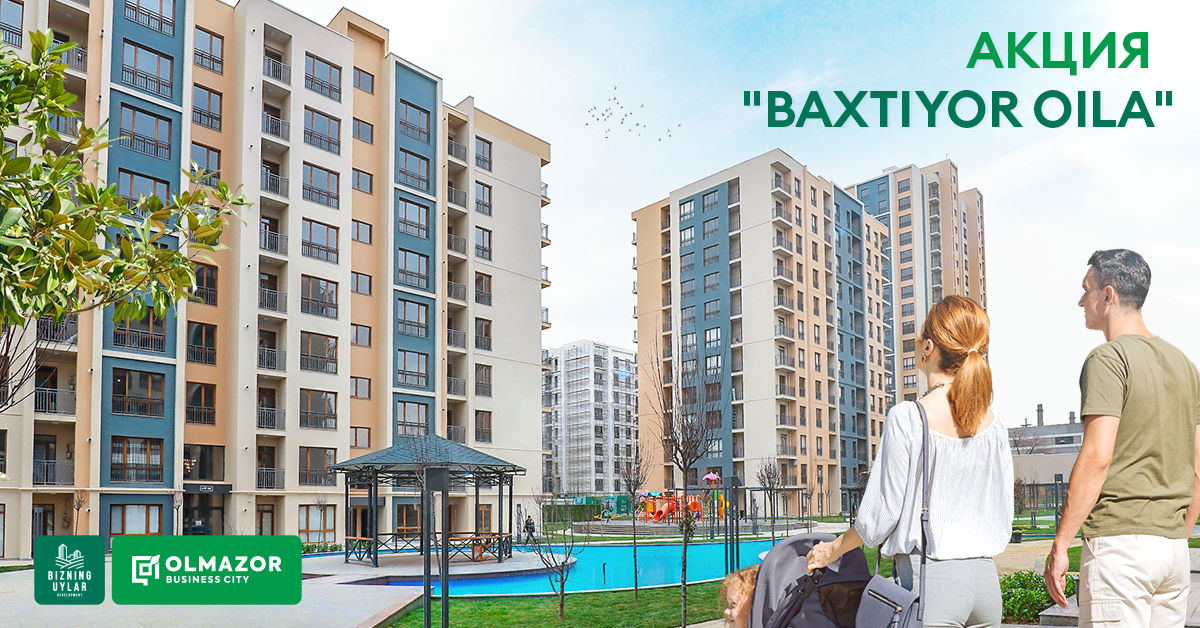 Этой весной компания Bizning Uylar Development приготовила сюрприз для будущих владельцев квартир в жилом комплексе Olmazor Business City. Вполне закономерно, что каждому клиенту хочется воспользоваться скидкой, особенно в тех случаях, когда вопрос касается такой крупной покупки, как будущий дом. Акция Baxtiyor oila дает возможность приобрести квартиру в новом жилом комплексе по специальной привилегированной цене со скидкой. Данное предложение было разработано с учетом определенных социальных групп, к которым относятся: