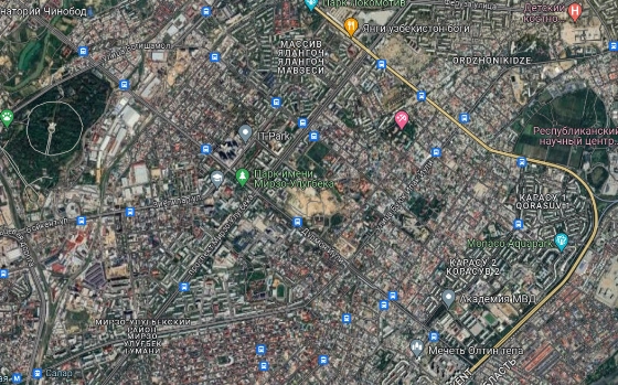 - улица Темура Малика — между перекрестками улиц Мирзо Улугбека и Султония.