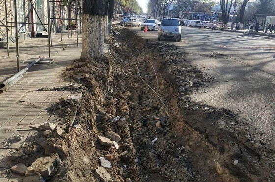 Возле кинотеатра Гагарина в Ташкенте выкопали корни больших деревьев. Об этом сообщает Ekolog.uz.