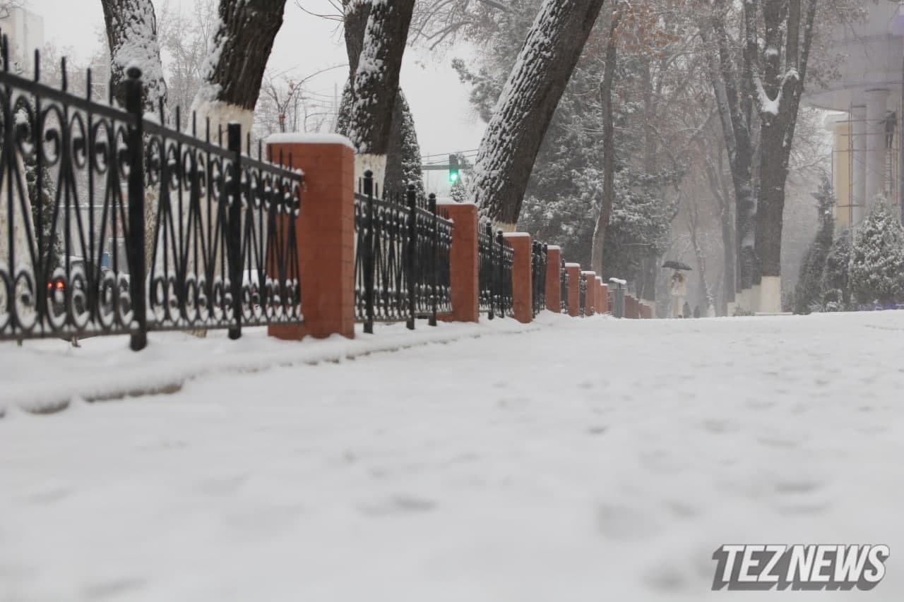 Узбекистанцы могут наблюдать необычное явление: снежные зерна выпадают как будто из тумана. Об этом сообщили в Узгидромете.