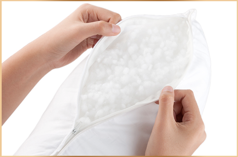 Силиконовый наполнитель – легкий, дешевый, упругий и долговечный материал, который очень быстро восстанавливает форму. Полиэфирное волокно – легкий и воздухопроницаемый материал, который можно стирать в машинке. Недостатки – недолговечность и излишняя мягкость. Микроволокно – это синтетический аналог пуха. Не впитывает влагу, не собирает пыль и непритязателен в уходе. Вискоэластик – один из лучших синтетических материалов, который отлично поддерживает голову во время сна, хорошо пропускает воздух и в него нет проблем с теплоциркуляцией. Микрогель – еще один аналог пуха, но теперь без минусов. Он воздухопроницаем, упруг и отлично справляется с регуляцией тепла. Подушки из микрогеля легкие и долговечные.